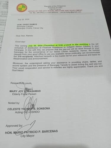Barangay Ocaña will host the distribution of financial assistance to indigent senior citizens on: 🗓…