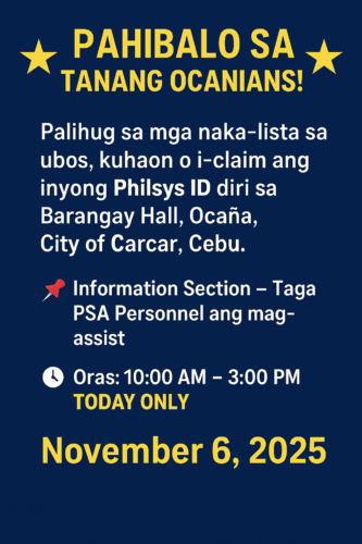 📢 Pahibalo sa Tanang Ocañians: BARANGAY ASSEMBLY 2025 🏛️ Maayong adlaw! Adunay ipahigayon nga Barangay…
