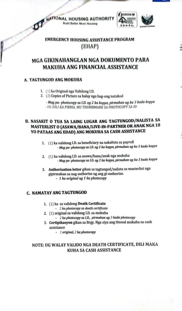 PALIHUG SA PAG BASA:Please be reminded sa mga documents needed ninyo, mga recipients. Siguraduhon nga…