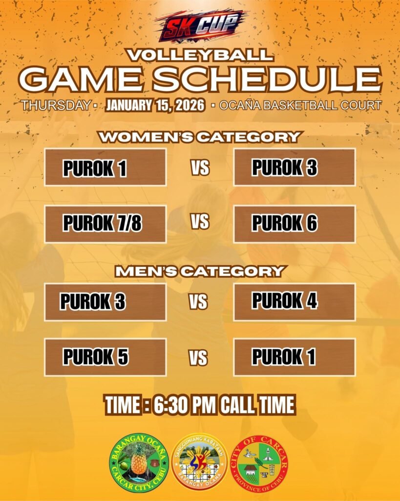 β€’ 6:30 PM – Purok 1 vs Purok 3