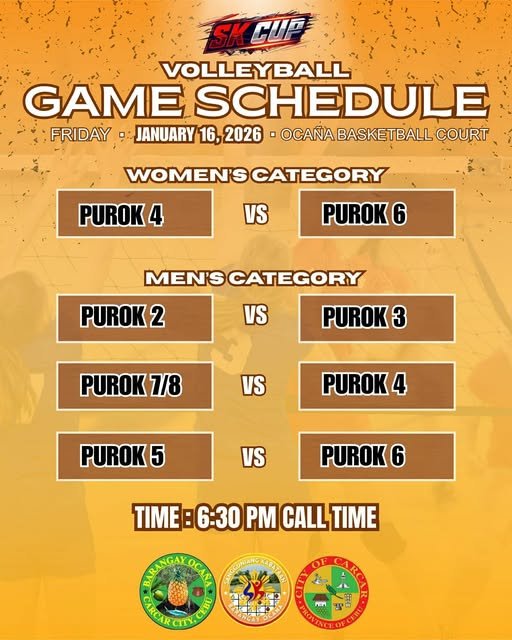 β€’ Third game: Purok 5 vs Purok 6 – 9:30 PM