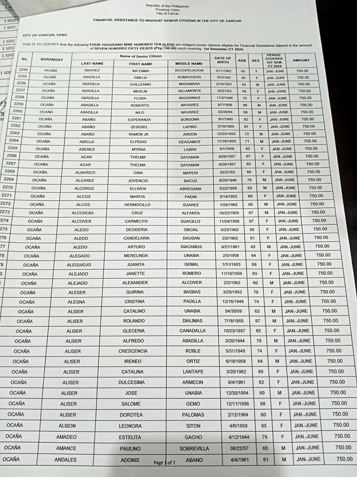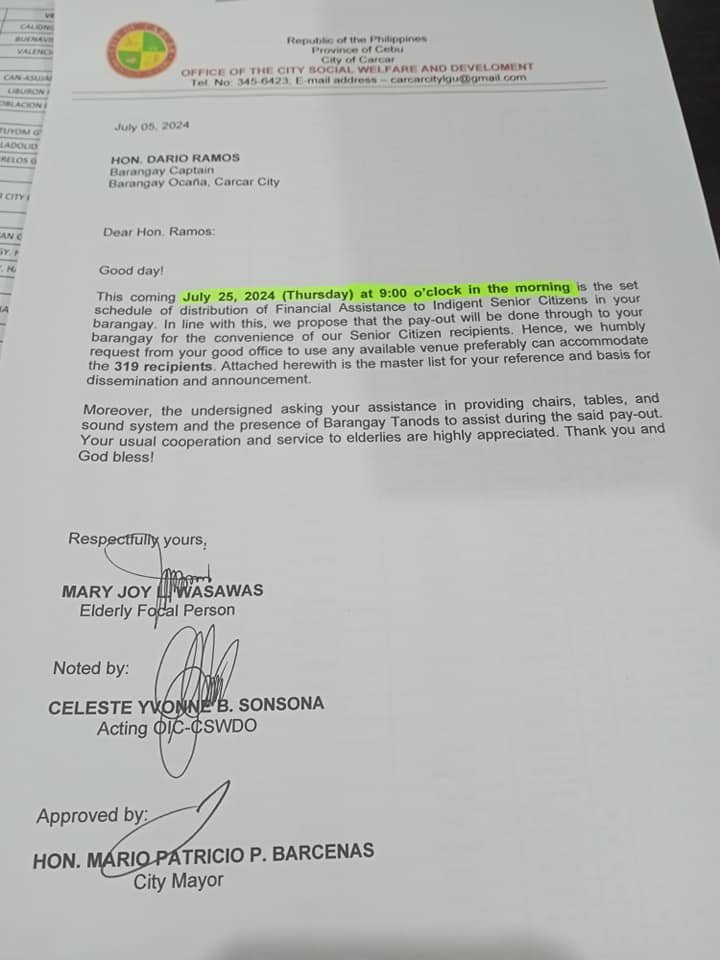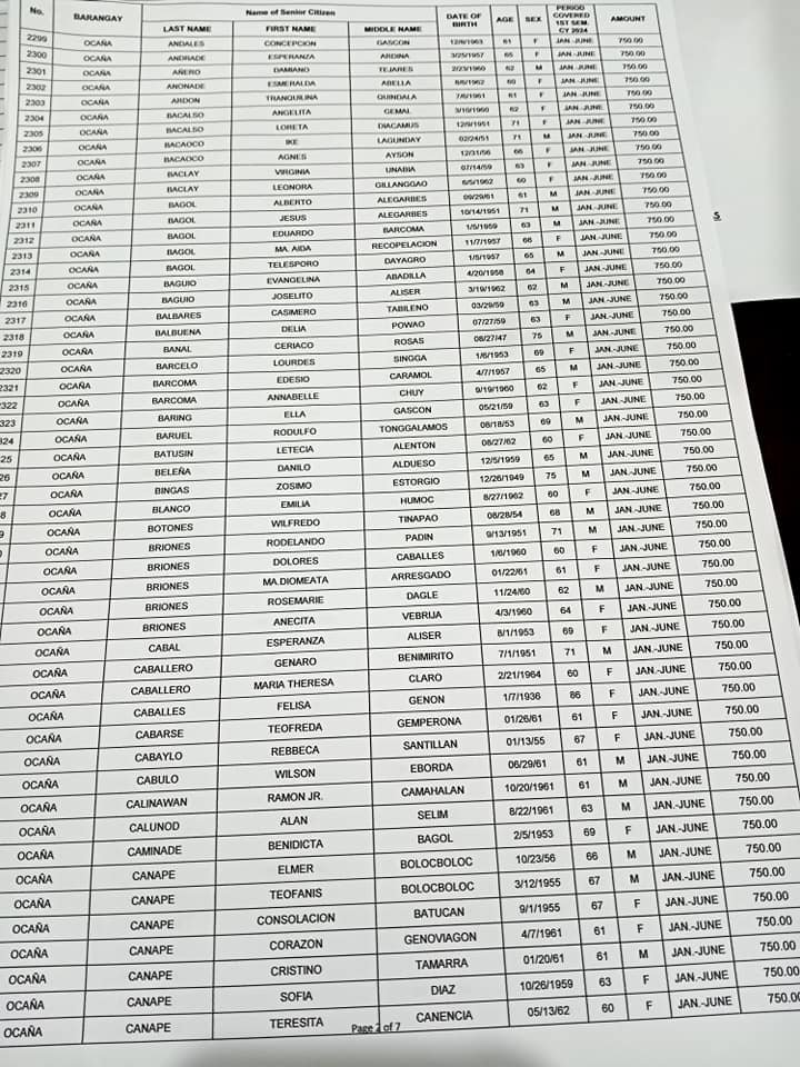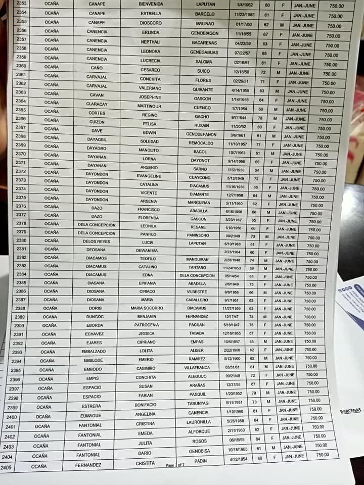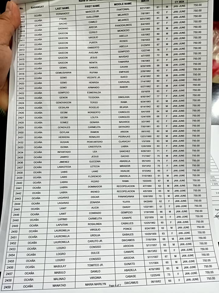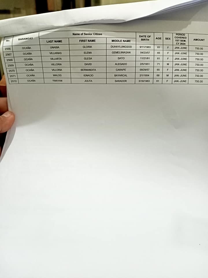 Barangay Ocaña will host the distribution of financial assistance to indigent senior citizens on: