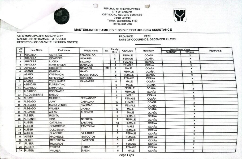 ✅ Kining mga pangalan nga naa sa lista mao ra ang e-validate para sa National Housing Authority (NHA) Housing Assistance.