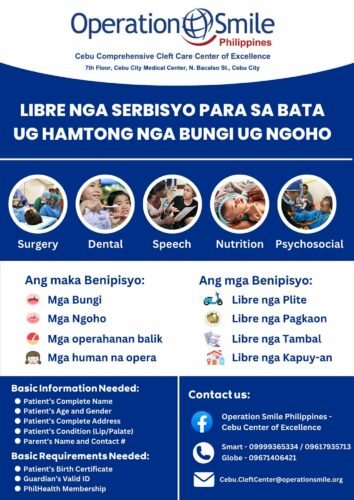 📢 OPERATION SMILE PHILIPPINES – LIBRE NGA SERBISYO PARA SA BATA UG HAMTONG NGA BUNGI UG NGOHO 📢 Alang sa mga interesado, palihug kontaka ang Operation Smile Philippines pinaagi sa musunod: FB Account: Operation Smile… OPERATION SMILE PHILIPPINES