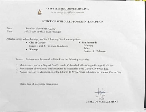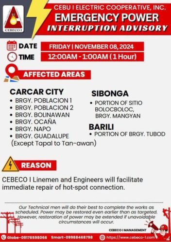 📢📢 PAHIBALO ALANG SA TANAN⚡ Emergency Power Interruption Advisory ⚡ Giawhag ang tanan sa pag-andam ug pagplano sa inyong mga kinahanglanon samtang adunay temporaryong pagkawala sa kuryente.