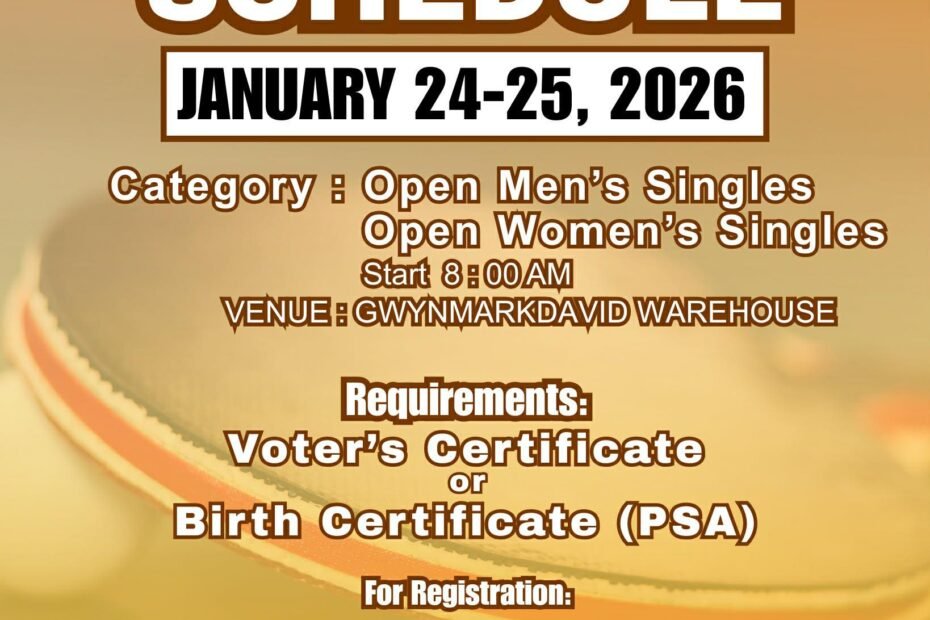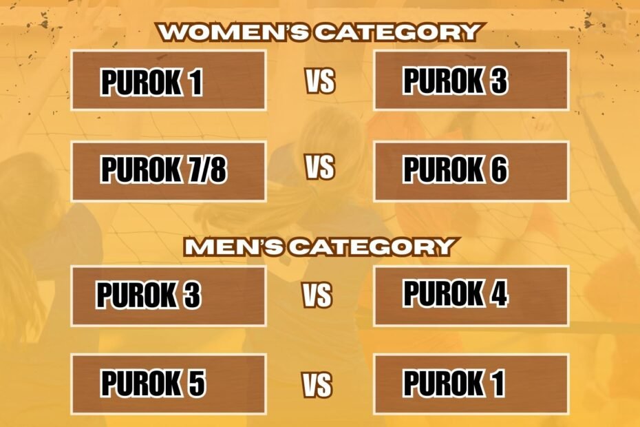 Battle for 3rd Place๐ Date: January 25, 2026 (Sunday)๐ก Time: 6:30 PM Womenโs Match: Purok 4 vs. Purok 1Menโs Match: Purok 5 vs. Purok 3 Come and support your teams! Letโs cheer for sportsmanship, teamwork,… ๐๐ฅ GAME SCHEDULE IS OUT! ๐ฅ๐