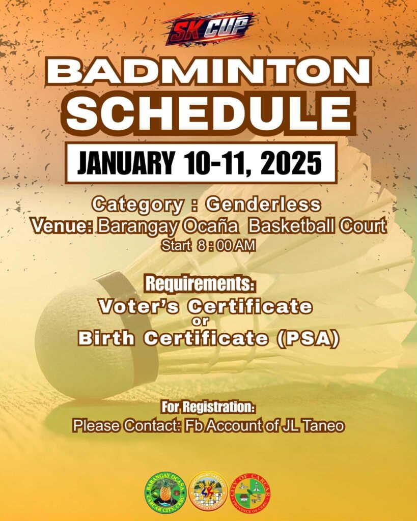 Get ready to smash, drop, and rally at the Barangay Ocaña SK Cup 2026 Badminton Tournament! 🏸