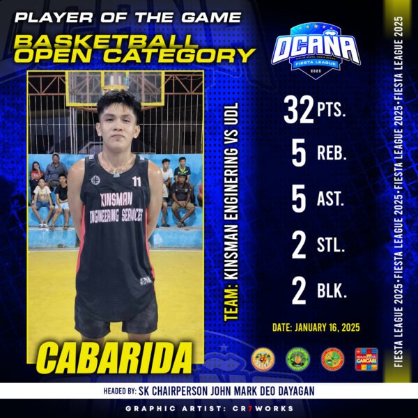 ๐ SANGGUNIANG KABATAAN FIESTA LEAGUE 2025 โ BASKETBALL TOURNAMENT ๐ ๐ Player of the Game:Cabarida…
