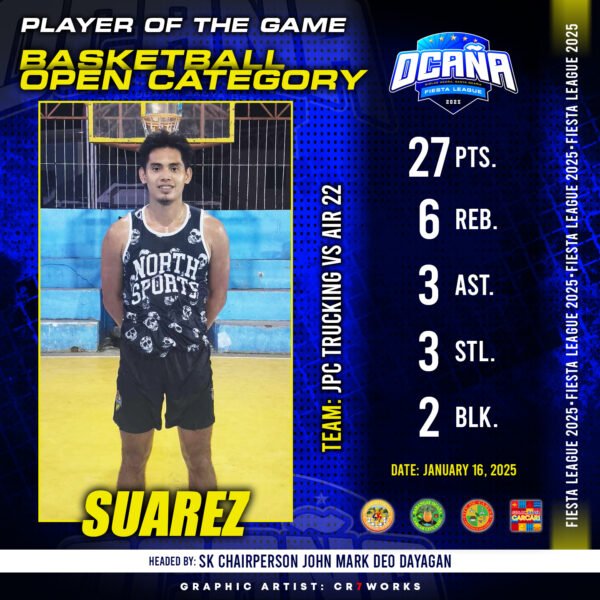 ๐ SANGGUNIANG KABATAAN FIESTA LEAGUE 2025 โ BASKETBALL TOURNAMENT ๐ ๐ Player of the Game:Suarez…