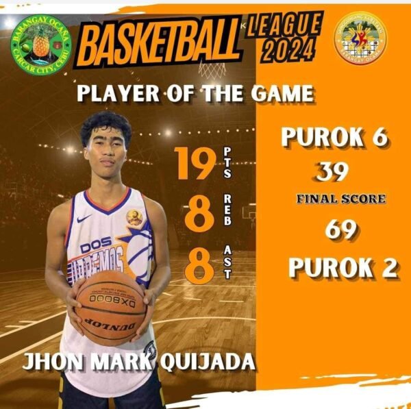 Congratulations to Jhon Mark Quijada from Purok 2 – Pulang Araw for being the Player…