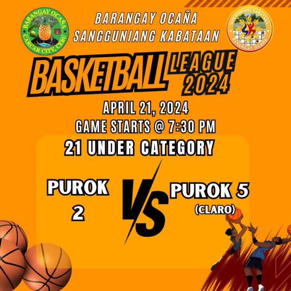 π Date: April 21, 2024 (Sunday)β° Games start: 7:30 PMπ Venue: Barangay OcaΓ±a Basketball Court…